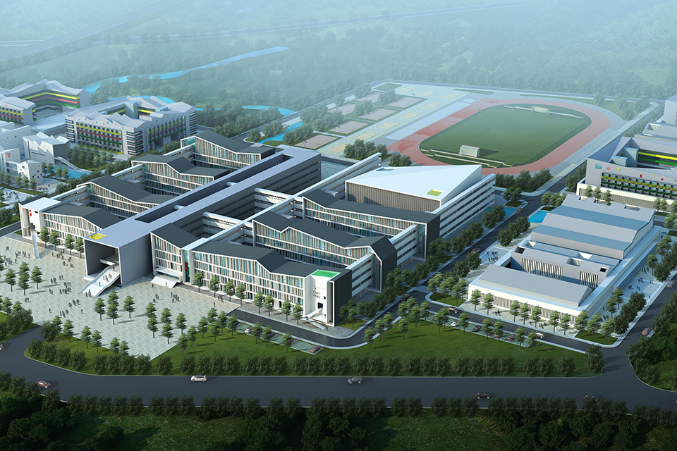 贵州某县第四中学暨小学:分为两大板块(即中学部,小学部)+四大分区(即中学教学区,中学生活住宅区,小学教学区,小学生活住宿区)+三大景观系统(即沿河景观,山谷景观,书院景观)